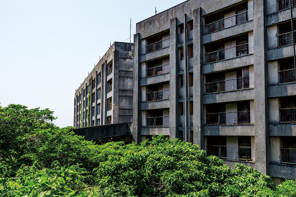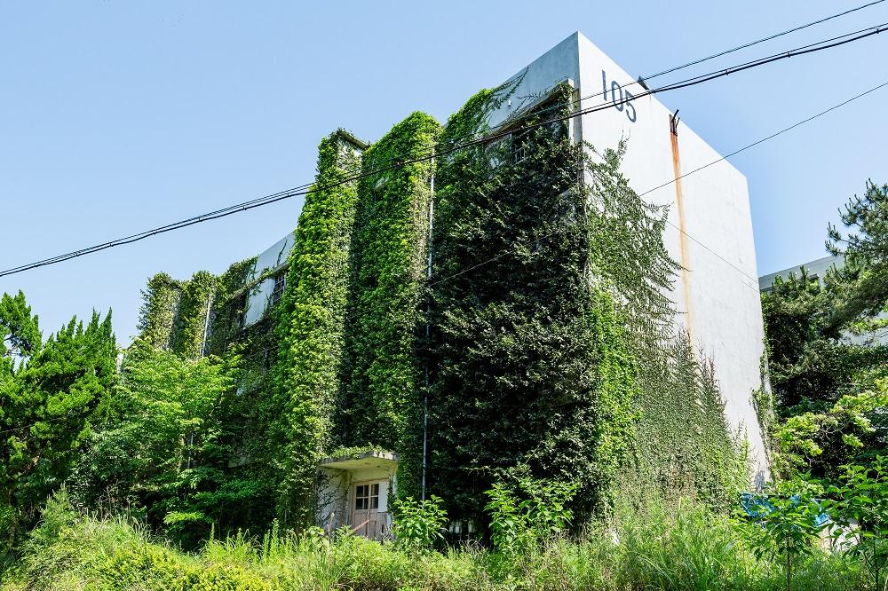 さて、ツアーの後は島内散策に繰り出してみよう。小さな島なので、徒歩でも十分に島内を巡ることができる。港周辺は炭鉱関連施設が比較的多いが、島の南側は池島の象徴的風景ともいえる社宅群が並ぶ居住エリア。何十棟もの団地が連なっており、現在はそのほとんどが空き家で立ち入り禁止だ。 閉山から20年余り、建物全体がツタに覆われているものや、低層階が草木に埋もれているものなど、人工物が植物に飲み込まれつつある姿は、寂寥感や自然への畏怖など様々な感情を呼び起こしてくれる。そんな人間の想いも知らぬ気にネコたちが気ままに廃墟の町で暮らす。 なお、オプションコースに参加すれば、昭和40年代の生活を再現した社宅内部や第二立坑などの、通常見ることのできない場所にも案内してもらえるのでオススメだ。また、午前コースとそのオプションコースは希望者には事前予約で「炭鉱弁当」(お茶付き900円)が出される。あくまでも予約が必要で、現在島内には飲食店がない。最後の店も2023年3月末で閉店したのだ。「炭鉱弁当」は炭鉱夫が坑内で食べていた弁当を再現。アルミの弁当箱も懐かしい風情がある。