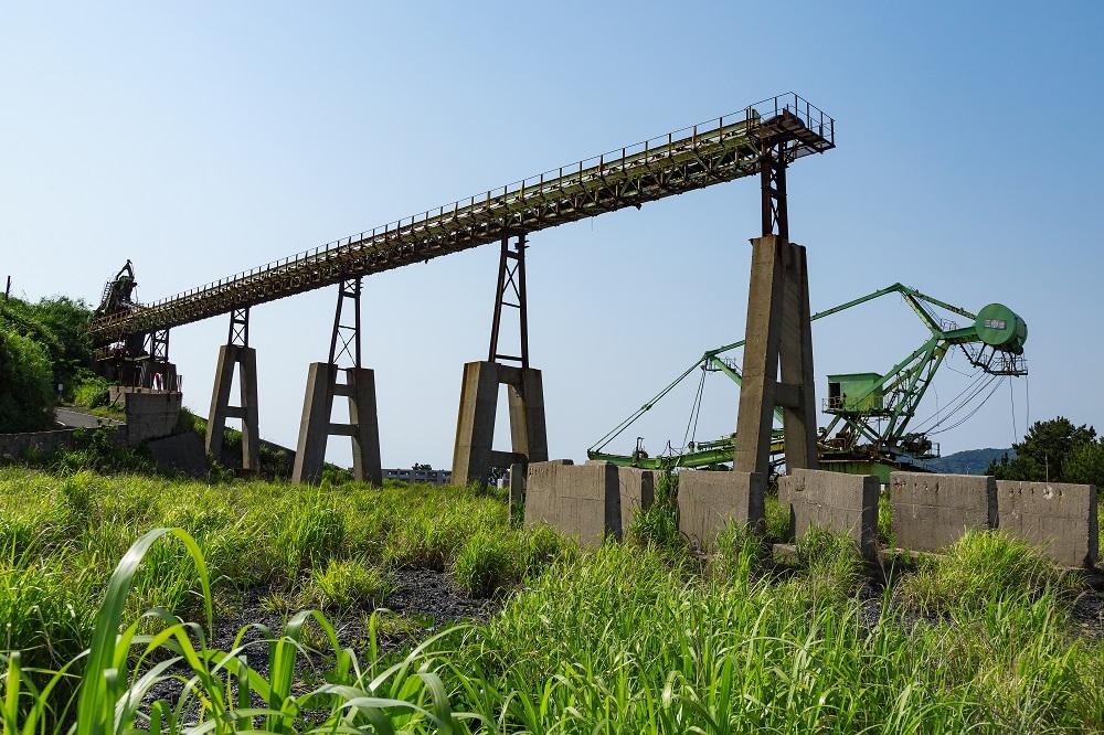 周囲約4㎞の小さな島だが、池島は日本で2番目、九州では最後まで現役で稼働していた炭鉱の島だった。昭和27年に炭鉱開発が始められ、昭和34年に営業出炭開始。昭和60年代には出炭量のピークを迎えたが、21世紀に入ってすぐの平成13年(2001)に閉山となった。その後は急速に人口が減ったが、海外の炭鉱従事者に採掘技術等を教えるための研修センターとして活用され、現在はその坑道の一部を見学できるようになっている。