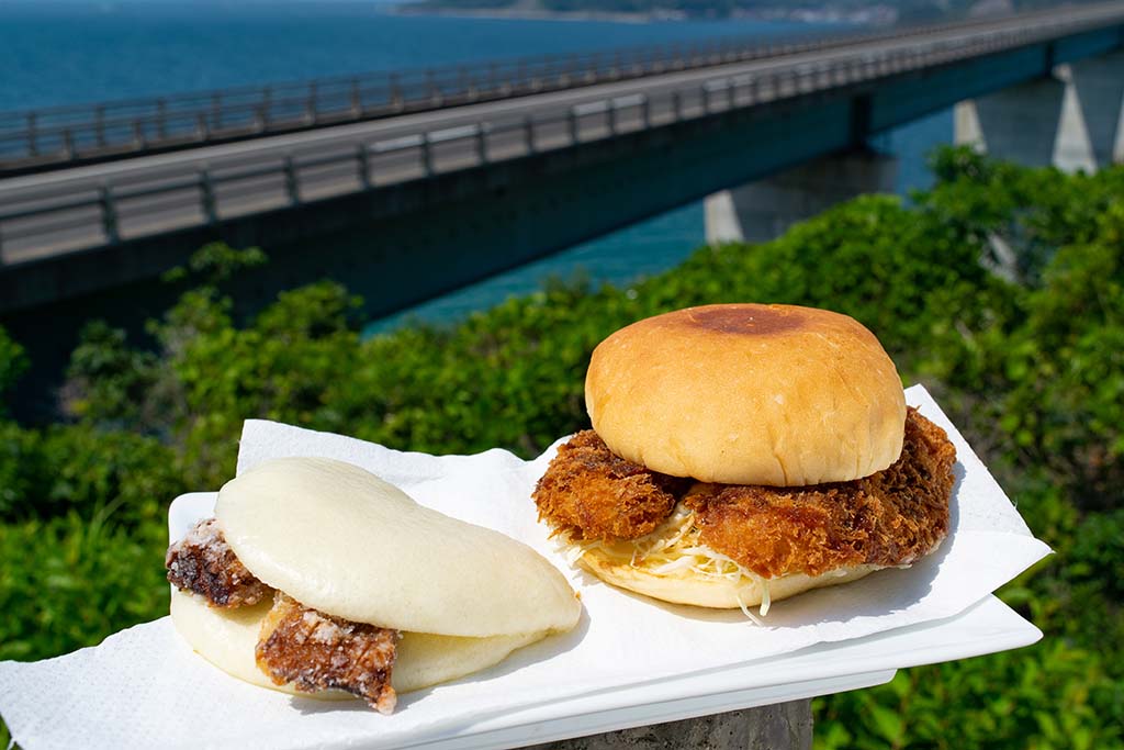 また、この本マグロを使った新メニュー「マグロまんじゅう」もテイクアウトコーナーに登場。長崎名物・豚の角煮まんじゅうに使われる皮で、漬けマグロの竜田揚げを挟んでおり、リーズナブルに本マグロの旨味を堪能できる。そのほか、アジの水揚げ量日本一であることから“アジフライの聖地”を宣言している松浦市ならではのメニューとして「アジフライバーガー」もあり。