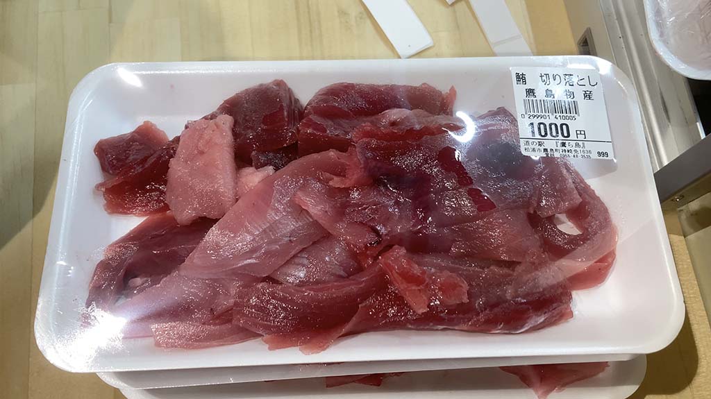 このボリュームで1パック1000円。マグロの切り落としは予約で完売することもある人気商品
