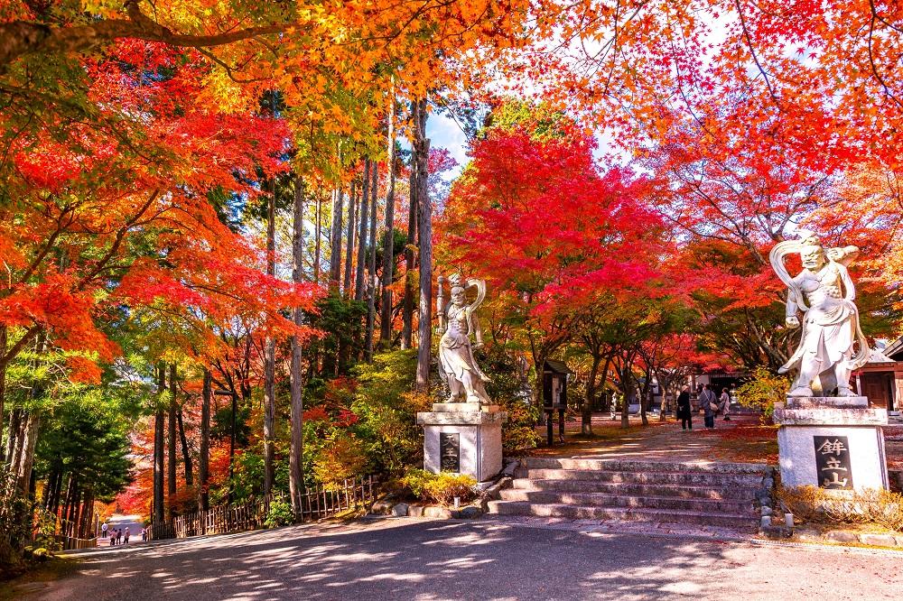 湯乃禅の里から約20分、篠栗町の篠栗四国八十八か所の中で最も標高が高い札所。お遍路さんからは「のみやまさん」と呼ばれている。広大な境内には本堂のほか、天王院、百観音堂、大師堂、愛染堂、阿弥陀堂、極楽往生院、七福神堂など多くの堂が点在する。春は桜、シャクナゲ、コブシ、夏はアジサイと深緑、秋は紅葉、冬は雪景色と四季折々の景観が広がる。特に秋の紅葉は素晴らしく、千本のモミジや、千本のドウダンツツジをはじめ、木々が一斉に紅葉する。