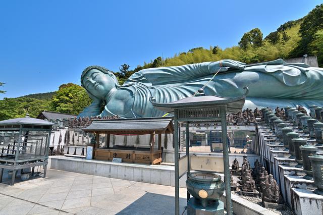 高野山真言宗の別格本山であり、ブロンズ像では世界一の大きさを誇る涅槃像が有名。弘法大師(空海)の足跡を辿るお遍路「篠栗四国霊場」の総本寺でもある。境内にはさまざまな厄災から人々を助ける「不動明王」、心身が清められるような感覚になる「不動の滝」、宝くじにご利益があると評判の「大黒堂」などご利益スポット満載。また、土産店や食事処もあるなど施設も充実し、国内外から参拝者が訪れる人気観光スポットとなっている。境内は祈りを捧げるための神聖な場所なので大声で騒ぐなどの行動は厳禁。マナーを守って静かに行動しよう。