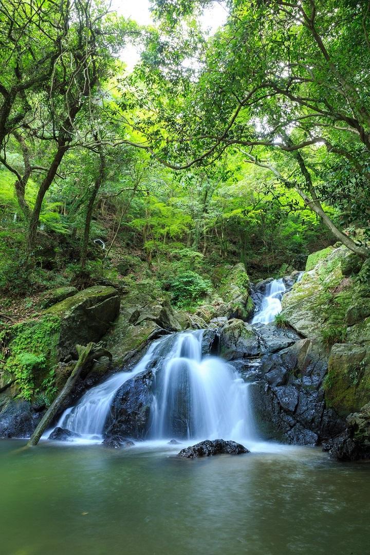 五重の塔から水を落としたように、流れが五つの段になっていることから名付けられた。落差20m。「筑前国続風土記」には、この辺りの里に黒田藩藩主の別館があったと記されている。俳人種田山頭火はこの滝を訪れている。またこの付近一帯は、篠栗耶馬渓とも称される景勝地で、くっきりと澄んだ滝つぼには、春の桜、夏の新緑、秋の紅葉と四季の移ろいが色鮮やかに映し出される。近くの「樹芸の森公園」にも寄ってみよう。