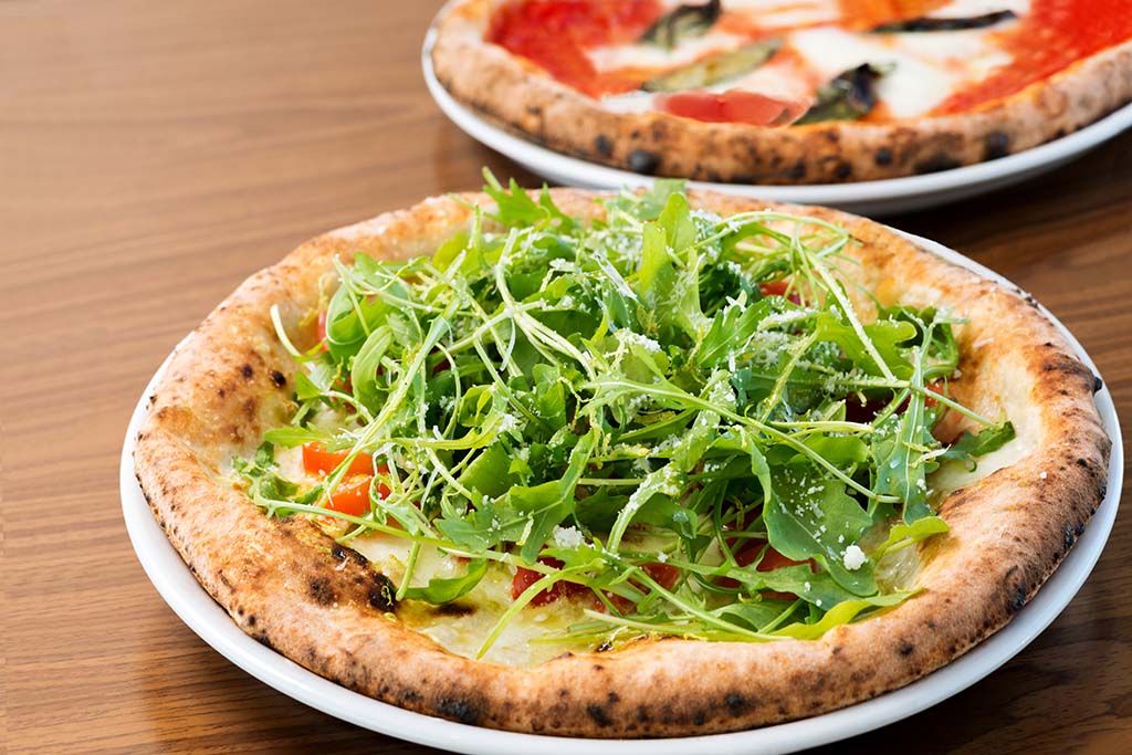 やはり外せないのは「ピッツェリア フィエロ」のピッツア各種、そして2階テラス席限定の窯焼き自家製イタリアンソーセージや生ハムなど。ドリンクやフライとのセットメニュー、上毛産野菜のピクルスもある。本物の味を追求するこだわりから、小麦やトマト、塩、チーズなどベースになる食材はすべてイタリア産。石窯も高火力を出せるイタリア製で、短時間で焼き上げることによりナポリピッツァの醍醐味である、表面はパリッとして中はもっちりという食感を生み出している。また、トッピングされる具材などは極力地元産の農産物を使用。なかでも店名を冠した「ピッツァフィエロ」は、上毛産のレモンをふんだんに使った、爽やかな香り漂う一品でシェフ自慢のメニューだ。なお、夜には一品料理なども登場し、お酒と共に味わえる大人の空間としても楽しむことができる。
