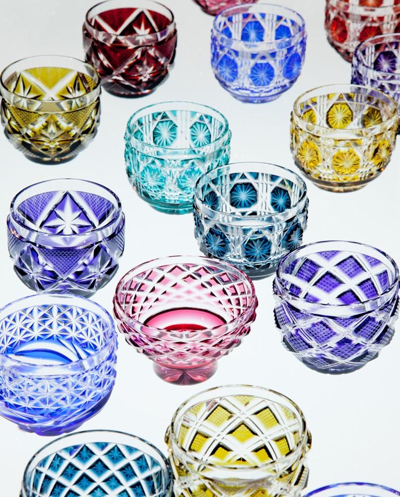幕末から明治初期に栄えた薩摩切子の復元を目指し、旧薩摩町の町おこしで設営された「さつま町ガラス工芸館」が始まり。ガラス工芸会社「薩摩びーどろ工芸」社が金赤、瑠璃、藍色を始め、薩摩切子の7色の復元に成功してきた。現在もガラス職人が吹き師(吹きガラス)、カットガラスの専門職で分担作業している。以前は工房見学やガラス工芸体験ができたが、コロナ以降は中止に。しかしギャラリーショップで繊細なカット細工が美しい薩摩切子を鑑賞し、購入する愉しさは変わらない。