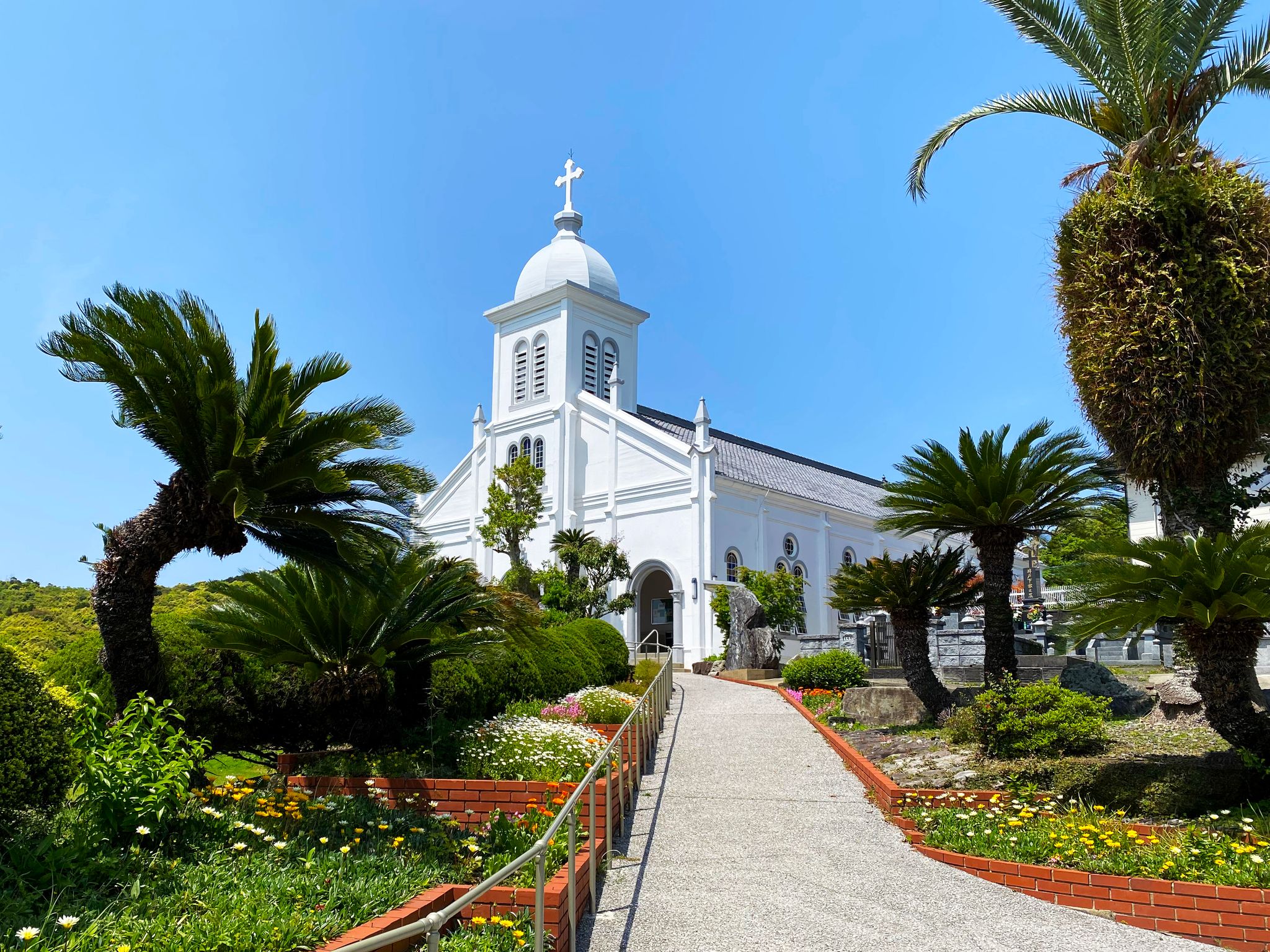 丘の上に佇む白亜の天主堂