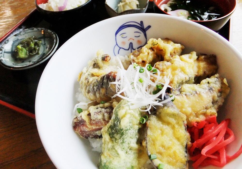 「天草ありあけタコ街道」に来たなら、やっぱりタコを食べるべし。駅レストランのロングセラーメニューにして数量限定でもあるのがこの「タコ天丼」だ。駅の土産品でもある「タコすてーき」を天ぷらにし、野菜天ぷらと共にご飯にトッピング。身が締まった有明のタコのぷりっとした歯応えが味わえる。ミニうどん、ミニサラダ、小鉢、漬物がセットになって税込み1,000円というのもコスパが良い。1日10食など数量に限りがあるので、オーダー時に確認を。