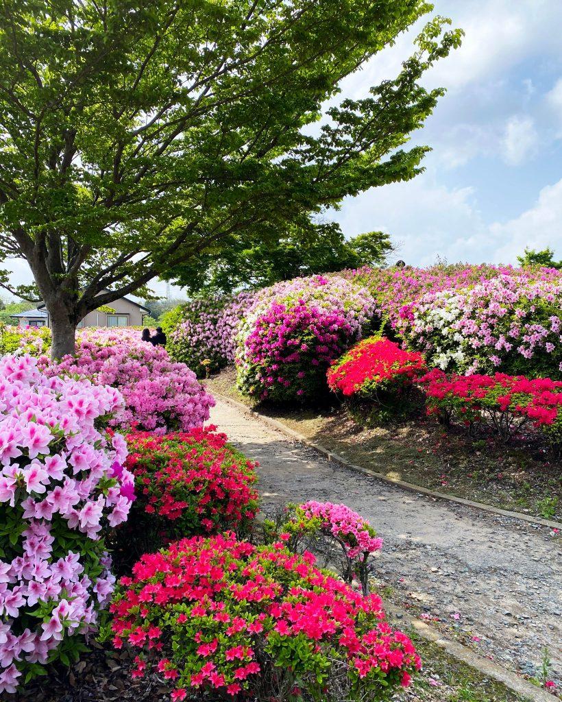 明治末に農業学校が創設され、昭和6年(1931)に昭和天皇が行幸したことから「昭和園」の名がついた。ここには桜並木やシャクナゲ、藤が咲くほか、大津町の花であるツツジはミヤマキリシマヤサツキなど、15種類4万本のツツジが植えられ、訪れる人を楽しませてくれる。ツツジの見ごろは4月下旬から5月上旬にかけて。園内には芝生広場や野外ステージ、児童広場、テニスコートなどもある。