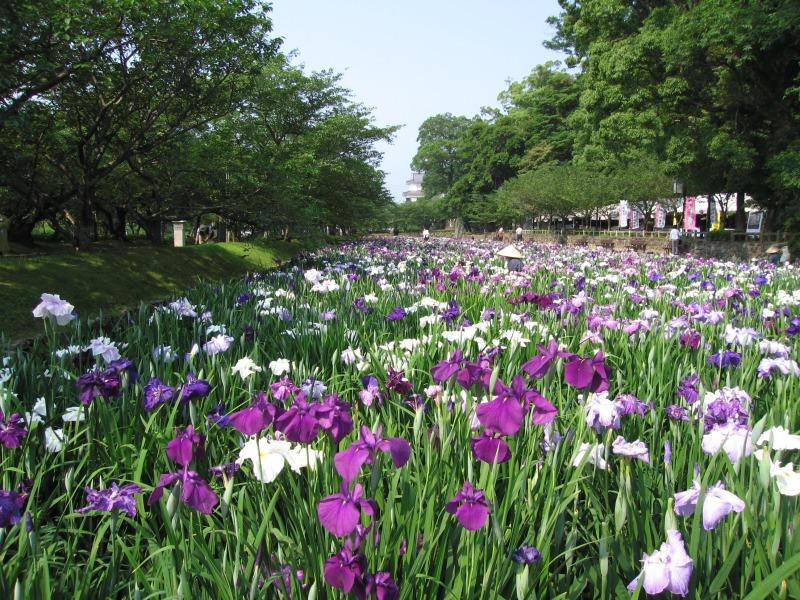 慶長4年(1599年)大村藩初代藩主・大村喜前が築城してから幕末まで270年余り大村氏の居城であった玖島城跡を中心に整備された公園。長崎県を代表する花の名所であり、3月下旬から4月中旬にかけて国指定天然記念物「オオムラザクラ」を含む約2000本のサクラが園内を彩る。5月下旬からはおよそ30万本の花菖蒲が咲き誇り、6月に入るとアジサイが見頃を迎える。(写真提供:長崎県観光連盟・上)