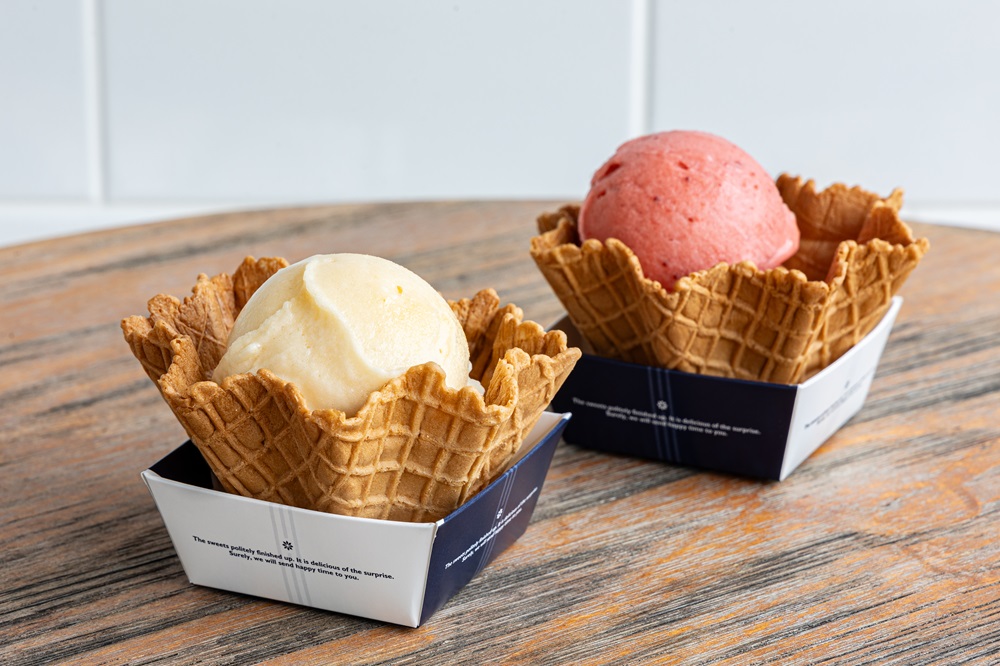 ナポリピッツァを日本に広め、国内だけでも数多くの店舗のイタリアンレストランを手がけてきた国際的シェフにして実業家のサルバトーレ・クオモ氏。2020年に日田市に移住し、地元食材で新たな商品を開発している。道の駅にある彼の新しく展開するジェラートブランド「GELATERIA LAB3680 OKUHITA」は日田大山の梅(写真左)、日田の梨、福岡のあまおう苺(写真右)などを使ったフルーツジェラートを販売。その果実の割合はなんと通常の約2倍の50%以上という。新鮮な果実をクオモ氏の技術で口当たり滑らかなジェラートに仕上げているのだ。超贅沢なお味を楽しもう。シングル580円~、ダブル690円~、ワッフルカップは+100円(各税込み)。