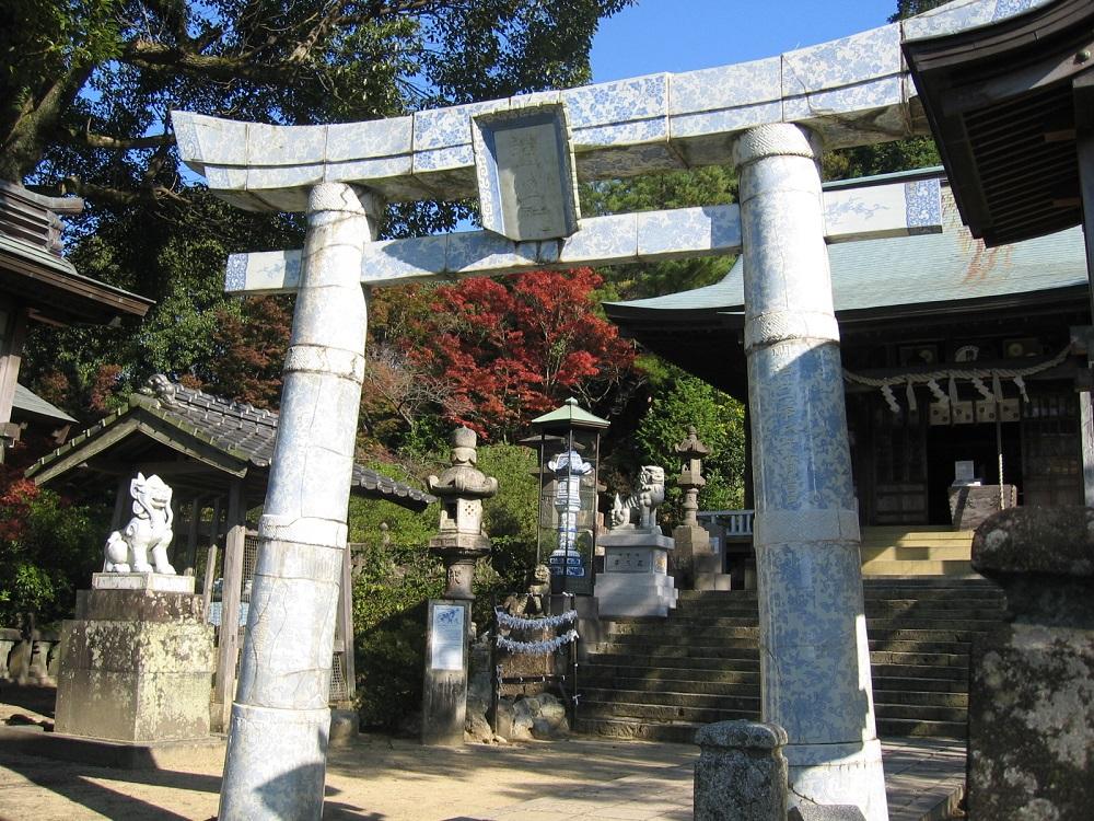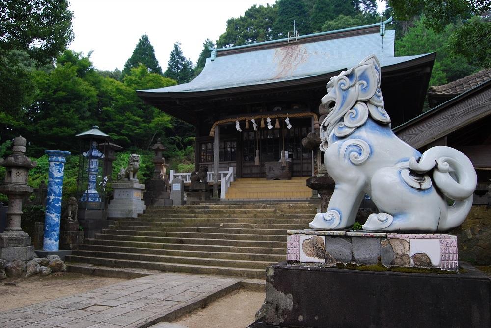 陶山神社は有田皿山代官の命により、万治元年(1658)に建立された。参拝者を迎える鳥居は白磁に染付による唐草文様を施している。これは、明治21年に陶工達が寄進したという。さらに境内には有田焼の技術の粋を集めて焼成された磁器製の狛犬や、大水甕、灯篭などが奉納され、日本磁器発祥の地らしい佇まいを見せている。社務所のお守り各種も磁器製であったり、磁器をイメージしたものであったり。これらは神社の宗廟窯で神職自ら作っているとか。旅の思い出にも最適だ。