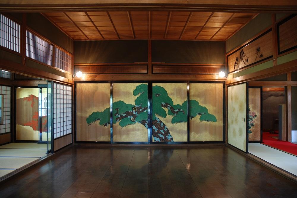 「肥前の炭鉱王」として知られた高取伊好(たかとりこれよし)の旧邸宅。明治37年(1904)から昭和初期にかけて増築され、約2,300坪の広大な敷地に居室棟と大広間棟の2棟が建つ。玄関は来賓用・主人用・家族用の3つがある。居室棟の洋室には大理石のマントルピースとアールヌーボー調のシャンデリア、大広間等には能舞台や茶室が設けられている。能舞台のある座敷は国内唯一の現存例とされている。杉戸絵や欄間などの意匠にも見どころが多く、72枚ある杉戸絵は京都四条派の水野香圃が半年ほど滞在して制作したものと言われる。平成10年(1998)に国重要文化財となった。