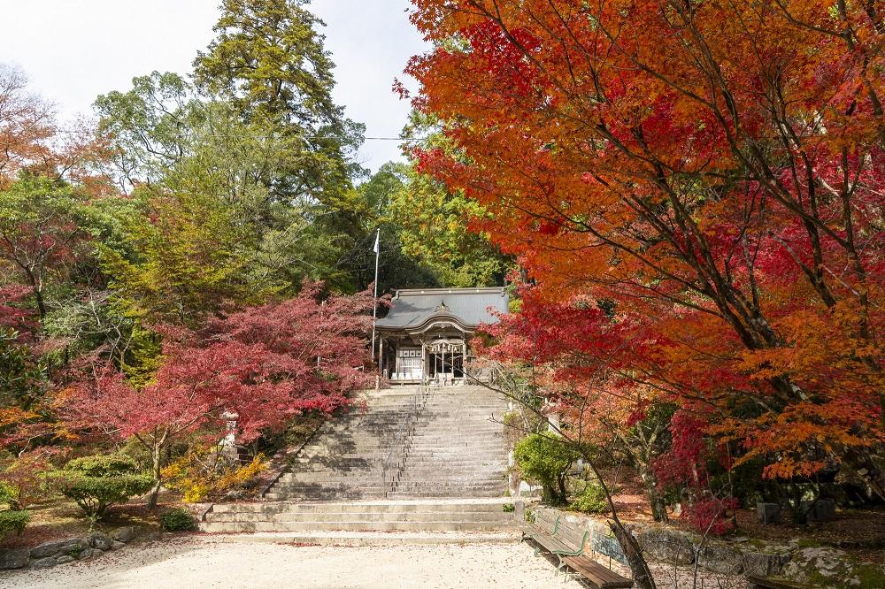 さて、九年庵の奥にある「仁比山神社」(写真下)の紅葉も見逃せない。そもそも九年庵は同神社の神宮寺だった「仁比山地蔵院」の旧跡地であり、仁比山仁王門を抜けて「仁比山地蔵院」、「九年庵」、そして「仁比山神社」へと参道が続く。その参道も秋は紅葉が美しい。同神社は山の神、農業の神として1200年以上にわたって信仰を集めてきた。境内にある約1000本のモミジの紅葉が観光客を魅了する。「九年庵」公開期間のタイミングに合わなくても、参道や地蔵院、神社で紅葉狩りが楽しめる。(写真提供:佐賀県観光連盟)