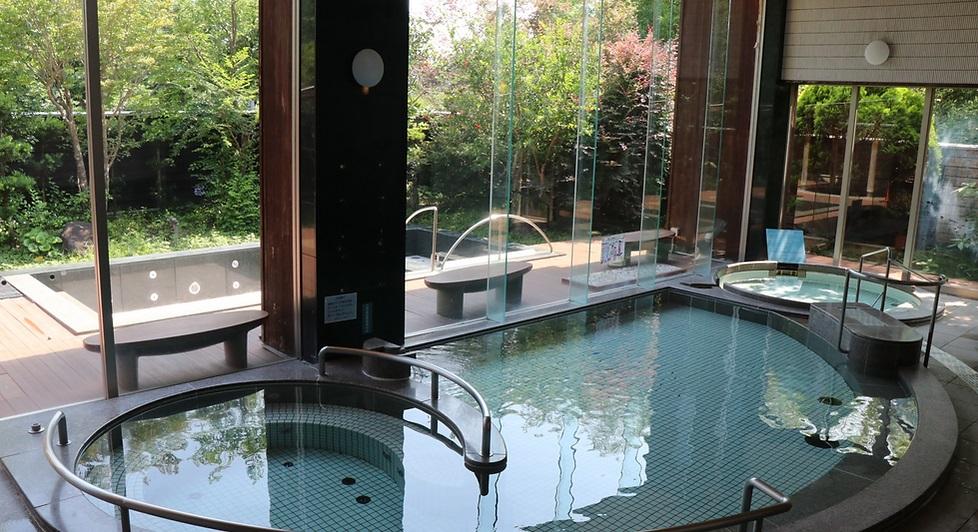庭園風に植栽がされた露天風呂は開放的な造りで、陶磁器や木桶で造られた1人用の湯船もある。内湯も窓が大きく、微細な泡が全身にまとわりつくビースキンやジャグジー、サウナといった多彩な湯船が揃っている。大浴場は男女日替わりで入れ替え。