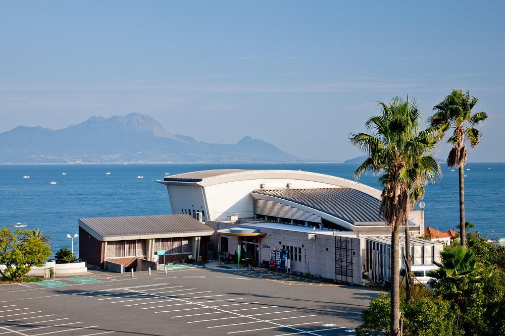 道の駅の温泉館の自慢はそのロケーション。正面に桜島、視線を転ずれば霧島連山を望むことができる。大浴場は1階と2階に別れており、日替わりで男女を入れ替えている。その2階大浴場の露天風呂から見る桜島は大迫力。刻一刻と変化する噴煙の様子は大地の鼓動を間近に感じられ、時間が過ぎるのを忘れてしまうほどだ。運が良ければ、錦江湾に気まぐれに現れるイルカの群れを見ることもできるそう。因みに2階大浴場の内湯には歩行浴風呂も。