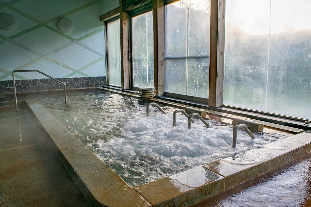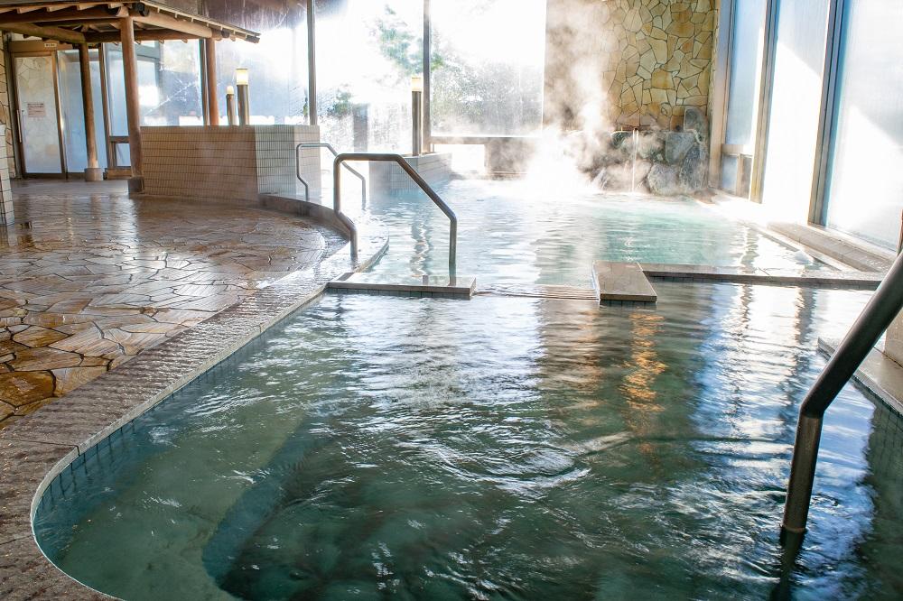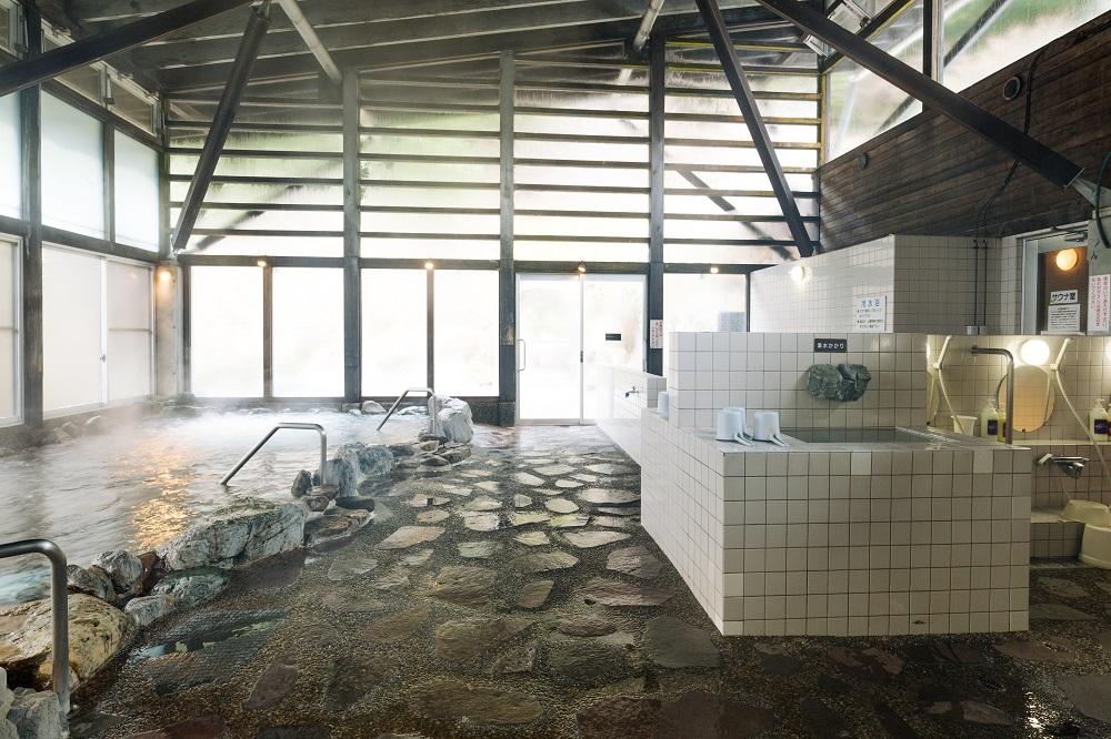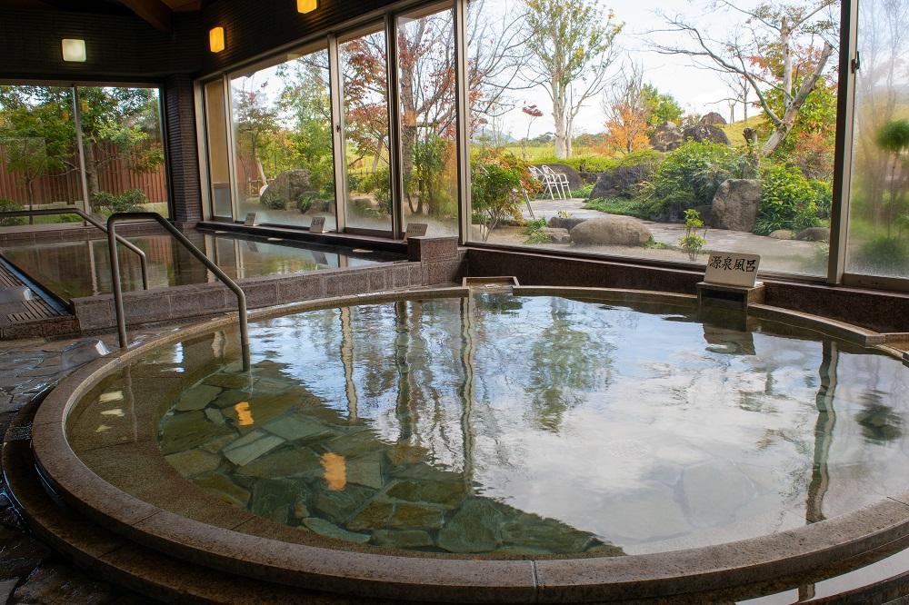 フィットンチットを発生させる森林浴サウナを備える広々とした浴場内には、毎分300?自噴する豊富な湯量を生かし、うずまき水流に身を任せる舞湯、電気風呂、泡風呂など男女それぞれ8種類の浴槽を完備。オーバーフローした湯はそのまま捨て新しい湯を注ぎ続けているので、常に新鮮で清潔な湯が楽しめるのも魅力だ。露天もいくつかの浴槽に別れ、ジェットバスを完備している。大浴場の休憩室ではうどん・そばなどの軽食を提供。敷地内には宿泊施設もあり、客室にも温泉が引かれた内湯を備えている。