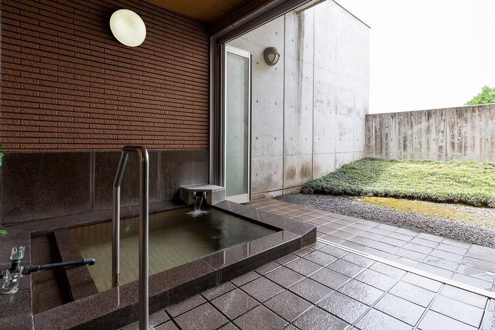 物産館とは別の敷地にあり、「御前湯」はその名が示す通り、岡藩主の湯屋跡に建つ。温度の異なる3つの源泉を持ち、泉質は炭酸泉。目立った気泡は出ないものの、温泉中の炭酸質による効果は抜群だ。男女日替わりの露天付き大浴場があり、貸切湯はそれぞれ造りの異なる4室がある。