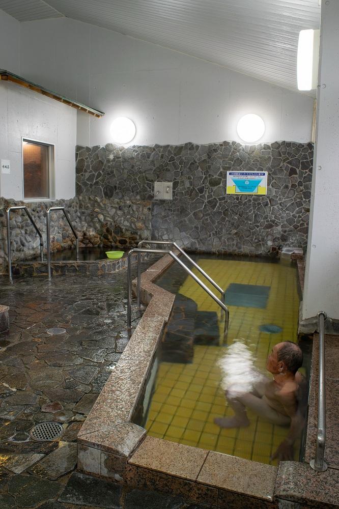 物産館より左方向、公園の奥の健康ふれあい館にある温浴施設「弥五郎の湯」。浴場内はこぢんまりとした湯船とサウナがあるシンプルな造りだが、注目したいのは湯。浴槽に注ぐ際にトゴール・ウォームタイトという鉱石を通すことにより、湯が天然温泉に近い成分に変化し、新陳代謝促進、保湿、保温効果などが期待できるという。さらに浴槽の床にはマイナスイオンを発生させるというスーパーイオン陶板が敷かれている。しっとりとした柔らかな浴感を体感してみよう。