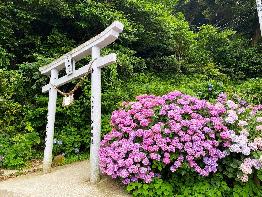 熊本県西海岸にある三角大矢野海辺県立公園の一角にある公園で、有明海に面した景観が人気で古くから景勝地として知られ多くの人が訪れる場所。公園の外周には約2000株の色とりどりのアジサイが植えられており、県下有数のアジサイスポットとしても有名。公園内には、船舶航行安全の守り神である住吉神社があり、境内には、日本最古の灯台跡に建てたという白亜の灯台「住吉灯台」がある。境内の中にある灯台としてもちょっと面白い観光スポットだ。